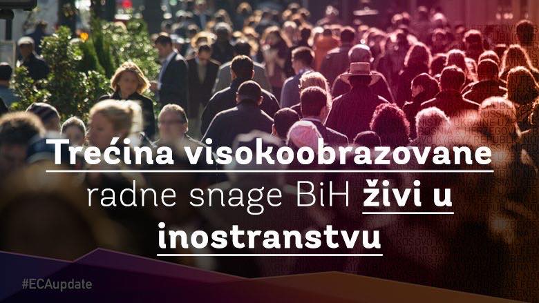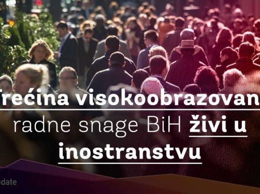 “Iako su migracije izazov mnogih zemalja Evrope i Centralne Azije, BiH je naročito pogođena njima. Zbog rata i iseljavanja blizu pola građana BiH živi u inostranstvu, a prema podacima iz 2017. preko trećine visokoobrazovane radne snage je izvan zemlje.”