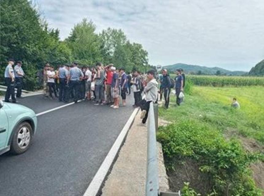Grupa migranata blokirala je put kod Bosanske Otoke i tako zaustavila neometano kretanje saobraćaja, saznaje portal Cazin.net.
