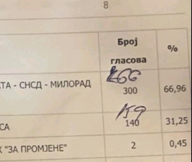 Prema informacijama sa kojima BN raspolaže po biračkim mjestima Miloradu Dodiku su upisivani glasovi i to: