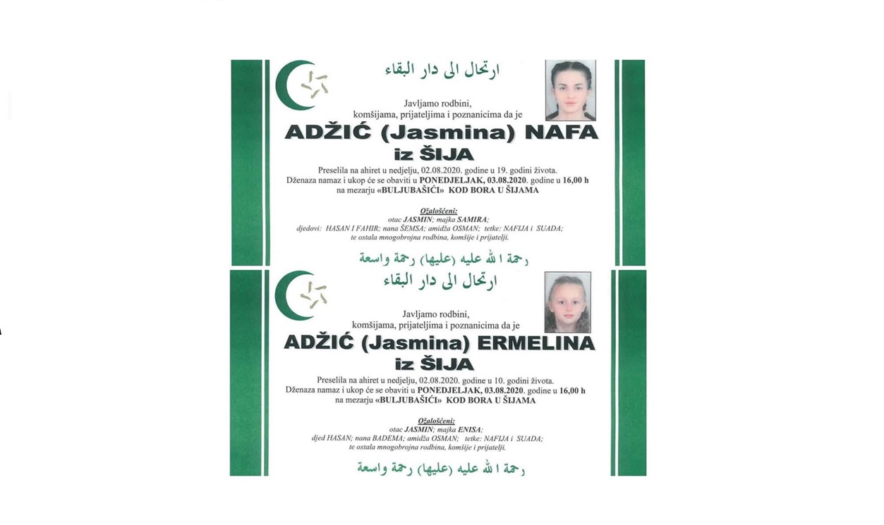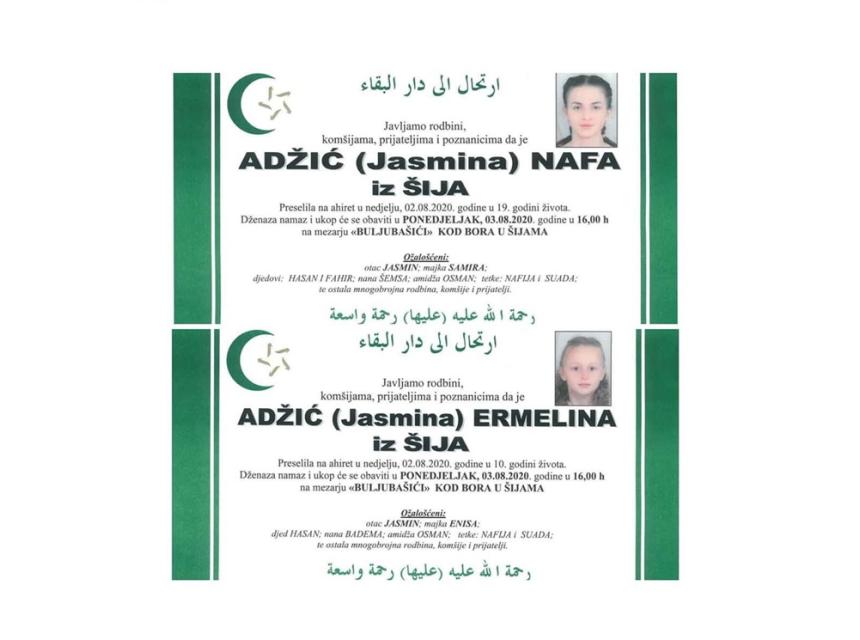 Molimo Boga dragoga da sestre Adžić nagradi džennetom, a porodici i najbližim podari sabur u ovim teškim trenucima.
