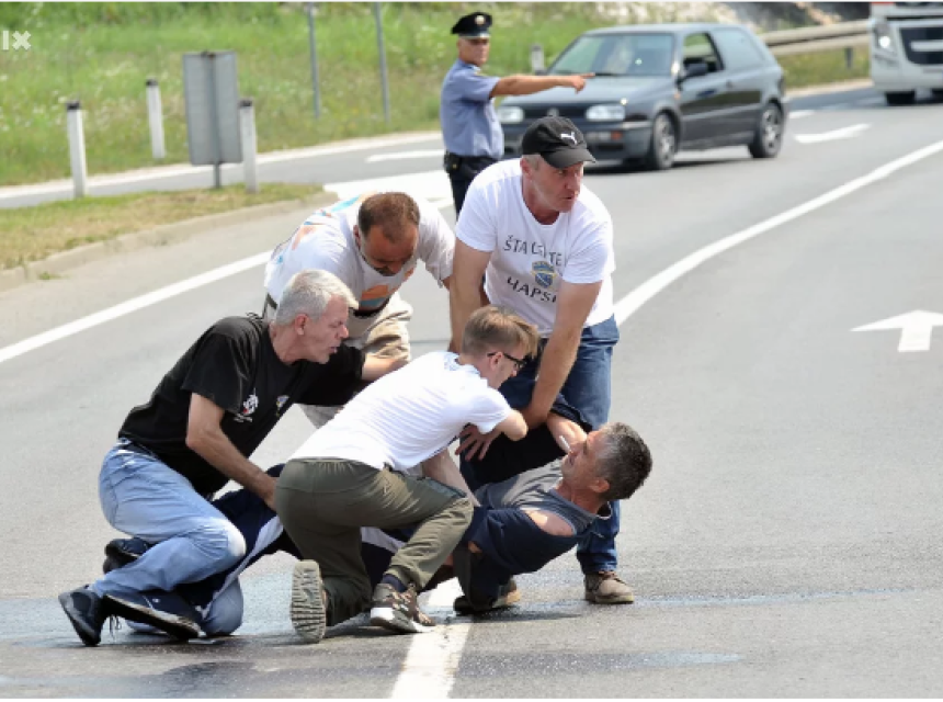 Nakon što je grupa od desetak bivših boraca blokirala petlju jedan od njih je donio kanister s benzinom, a zatim ga polio oko sebe te upaljačem u rukama prijetio da će se zapaliti.