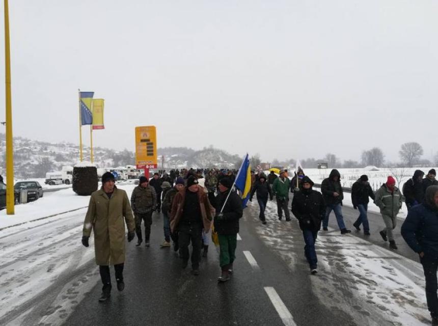 Slično okupljanje na petlji Šićki Brod u Tuzli priredilo je više od 300 članova nekoliko boračkih udruženja iz Tuzlanskog kantona.