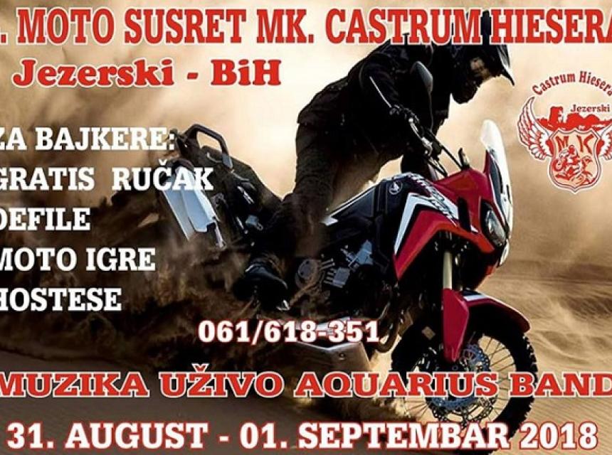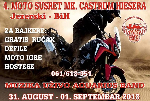 Tradicionalni moto susret, koji svake godine organizuje MK "Castrum Hiesera" iz Bosanske Krupe, i ove godine okupit će sve zaljubljenike u motore u periodu od 31.08 do 01.09.2018. godine.