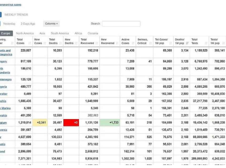 Po ovoj stranici Bosna i Hercegovina dosad je registrovala 225.857 slušajeva zaraze koronavirusom, a 10.203 osobe su preminule.