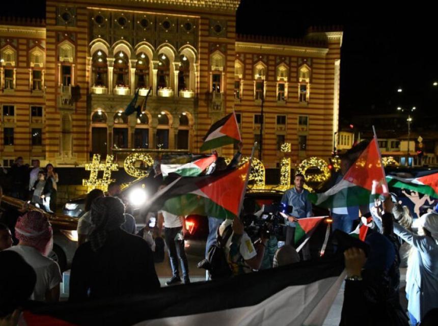 Za vrijeme prošlog sukoba između Izraela i Hamasa, 2021. godine je zid gradske vijećnice u Sarajevu bio osvijetljen bojama palestinske zastave kao podrška Palestini, a Palača Republike Srpske u Banjoj Luci bila je obojena u boje izraelske zastave.