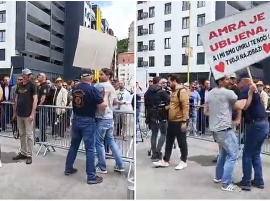 Naime, brat Amre Kahrimanović došao je na obilježavanje, a pojavio se s natpisom na kojem je pisalo "Amra je ubijena, a mi smo umrli te noći, tvoji najdraži".