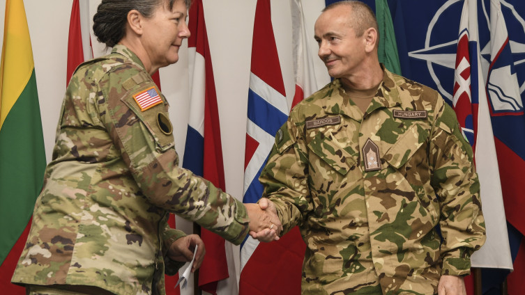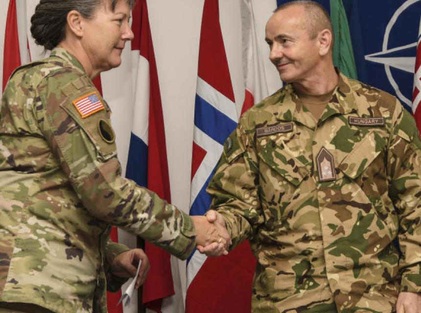 Brigadna generalica Marti Bisel (Bissell), komandantica NATO štaba Sarajevo, prisustvovala je ceremoniji primopredaje dužnosti novom načelniku štaba, brigadiru Antalu Bardošu (Bárdos).