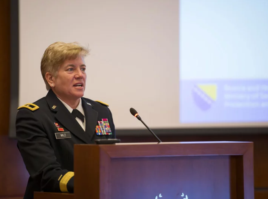 Brigadna generalica Giselle M. Wilz prva je žena koja je obavljala ovu čelnu funkciju u NATO-u u BiH.
