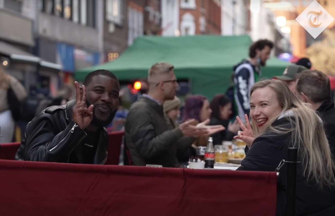 Stolovi su bili prepuni ljudi koji su se, unatoč prohladnom vremenu, zaželjeli svojeg prvog pića ili obroka na otvorenom u posljednjih nekoliko mjeseci. Mnogi su čak zaplesali na ulicama.