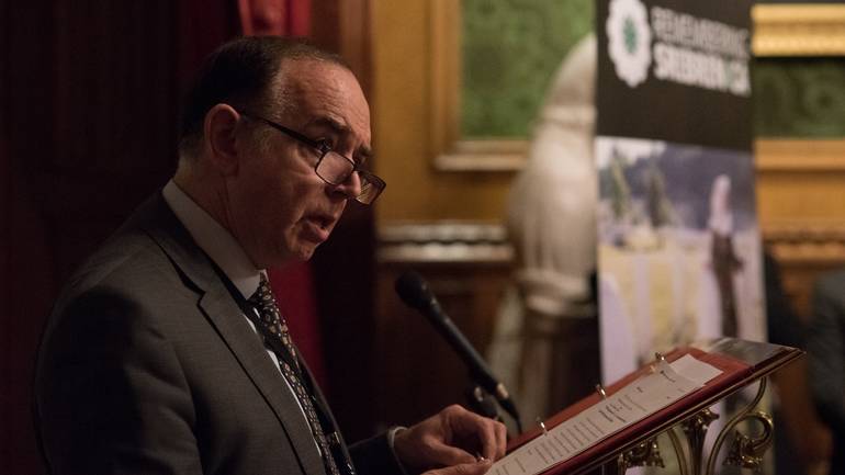 U izjavi za medije naglasio namjeru britanske vlade da se događaji, koji su za posljedicu imali masovna ubijanja uključujući i genocid u Srebrenici, nikada ne zaborave u kulturnom i obrazovnom smislu.