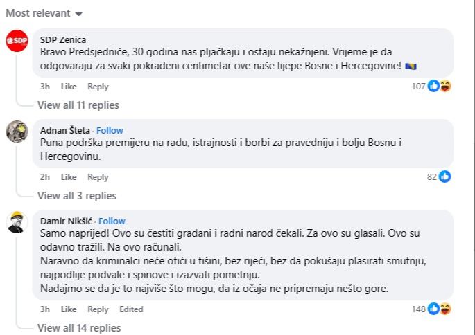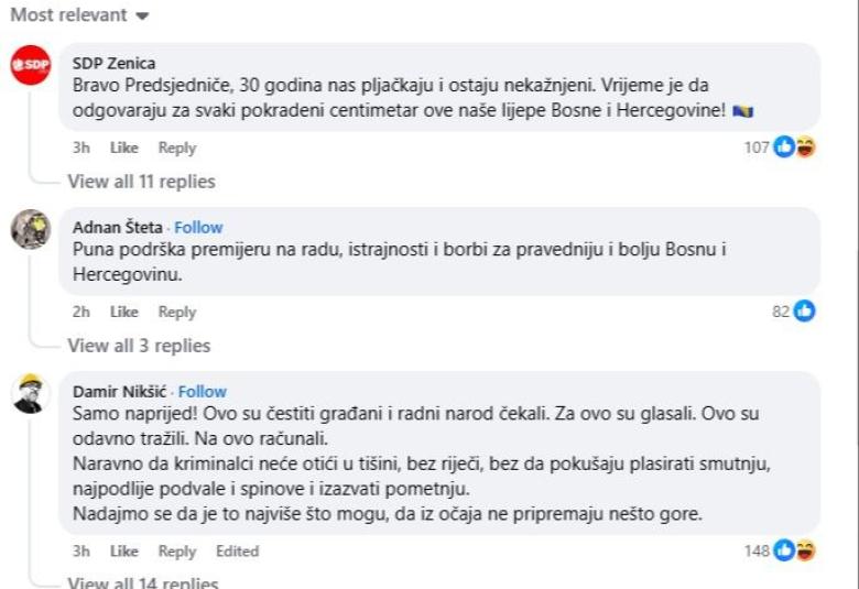 - Bravo Predsjedniče, 30 godina nas pljačkaju i ostaju nekažnjeni. Vrijeme je da odgovaraju za svaki pokradeni centimetar ove naše lijepe Bosne i Hercegovine - poručili su iz zeničkog SDP-a.