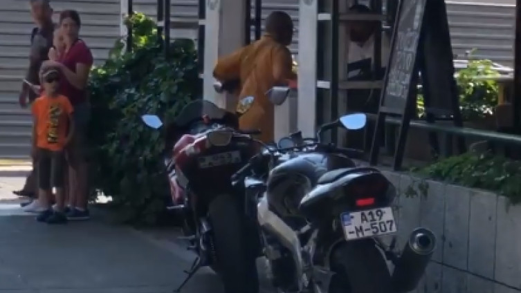 Konobar, uvidjevši da monah prilično počinje biti nepodnošljiv, zamolio ga je da se odmakne od stola, a Redžić je nekoliko minuta poslije zabilježio moment kako on prijeti konobaru i poziva ga na tuču.