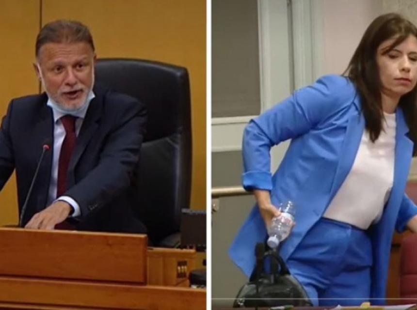Ona mu je uzvratila, međutim mikrofoni su bili isključeni pa se nije moglo čuti šta je govorila i time dobila četvrtu opomenu i oduzimanje prava govora te joj je naređeno da napusti sabornicu za jedan dan.