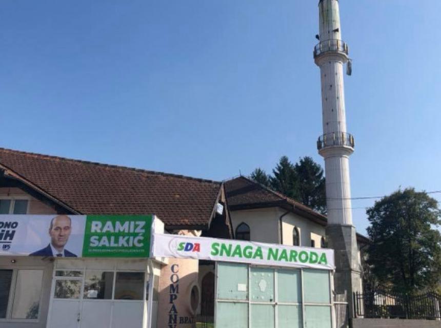 U ovom slučaju radi se o džamiji u Bratuncu na kojoj su okačeni plakati Ramiza Salkića iz SDA.