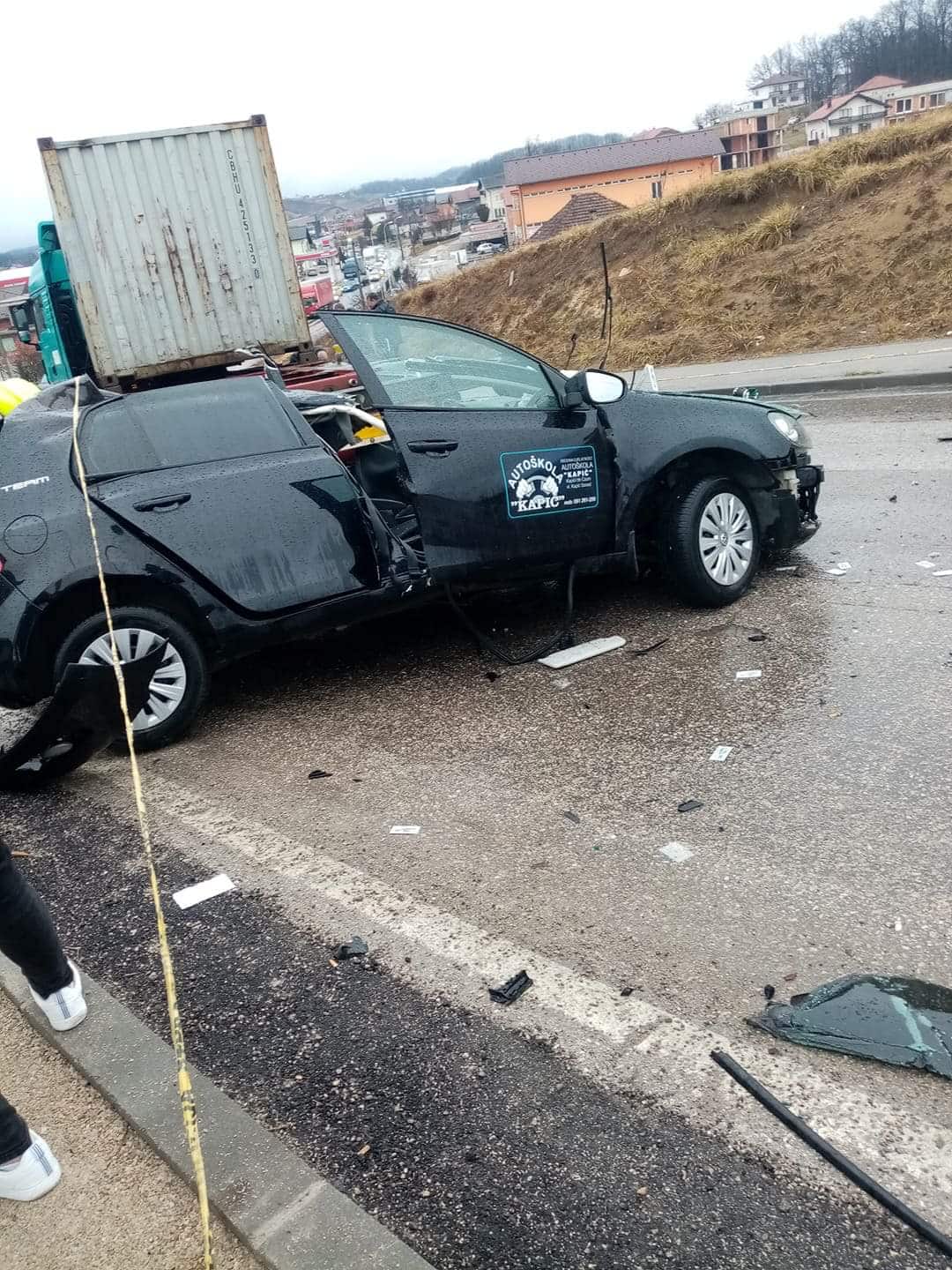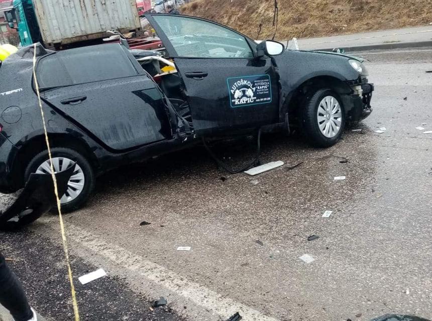 Prema prvim informacijama u nesreći je učestvovalo vozilo autoškole Golf IV i teretno vozilo-kamion.