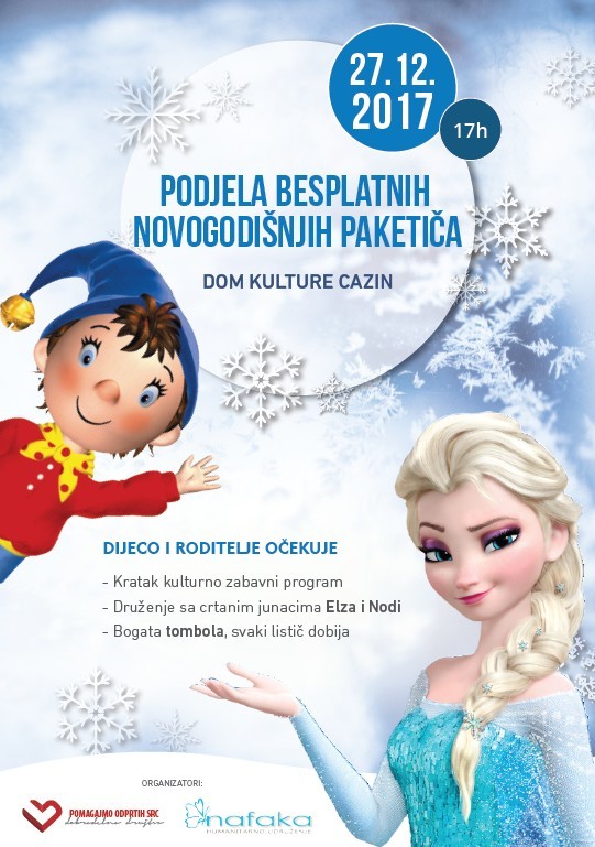 Humanitarno udruženje Nafaka ove godine organizuje priredbu za djecu na kojoj će biti podijeljeni besplatni paketići za svako dijete. Priredba će se održati u Domu kulture Cazin, 27.12.2017 godine u srijedu s početkom u 17. sati