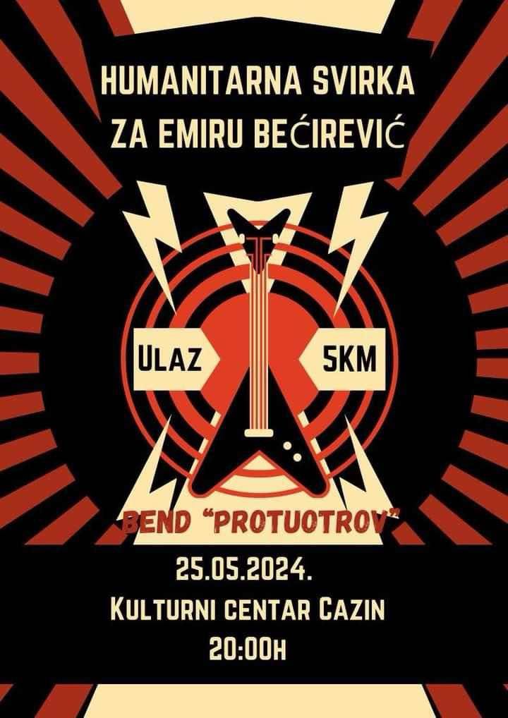 Poštovani i dragi sugrađani, u subotu, 25. maja 2024., u Centru za kulturu i turizam grad Cazin održat će se humanitarna svirka sa početkom od 20:00h.