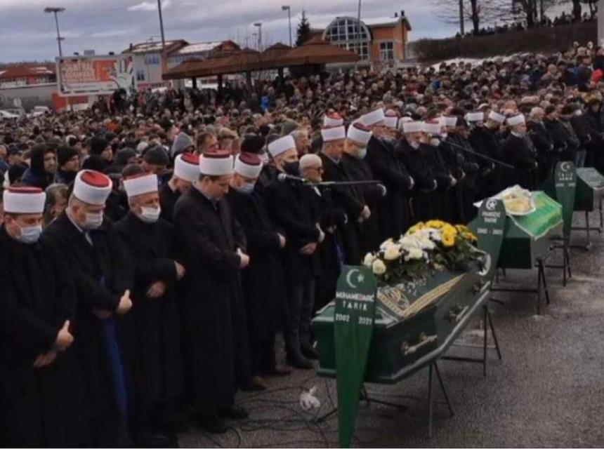 Stotine i hiljade ljudi su danas bili i klanjali dženazu trojici mladića. Dženazu je predvodio muftija bihaćki. Prvo se klanjala dženaza za rahmetli Armina Čajića, a zatim za Tarika Pandžića i nakon toga za Tarika Muhamedagića.
