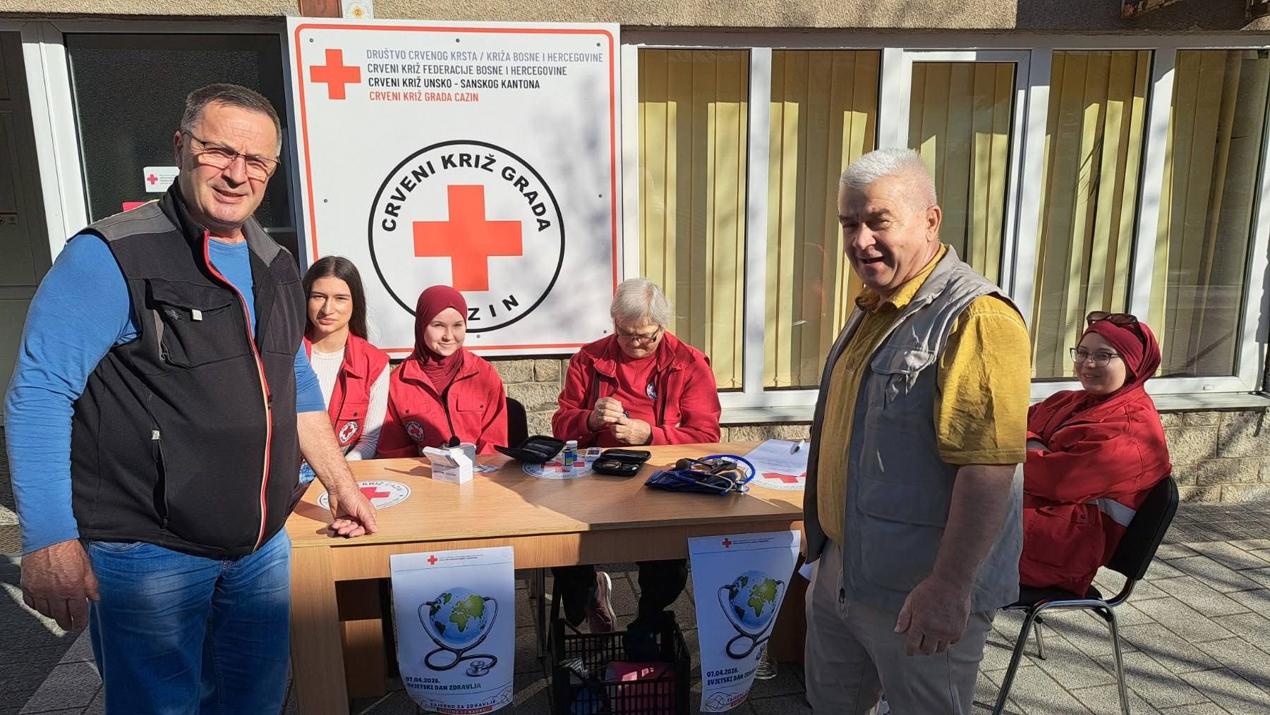 Povodom obilježavanja Svjetskog dana zdravlja, Crveni križ grada Cazina organizirao je danas akciju besplatnog mjerenja krvnog pritiska i nivoa šećera u krvi za građane.