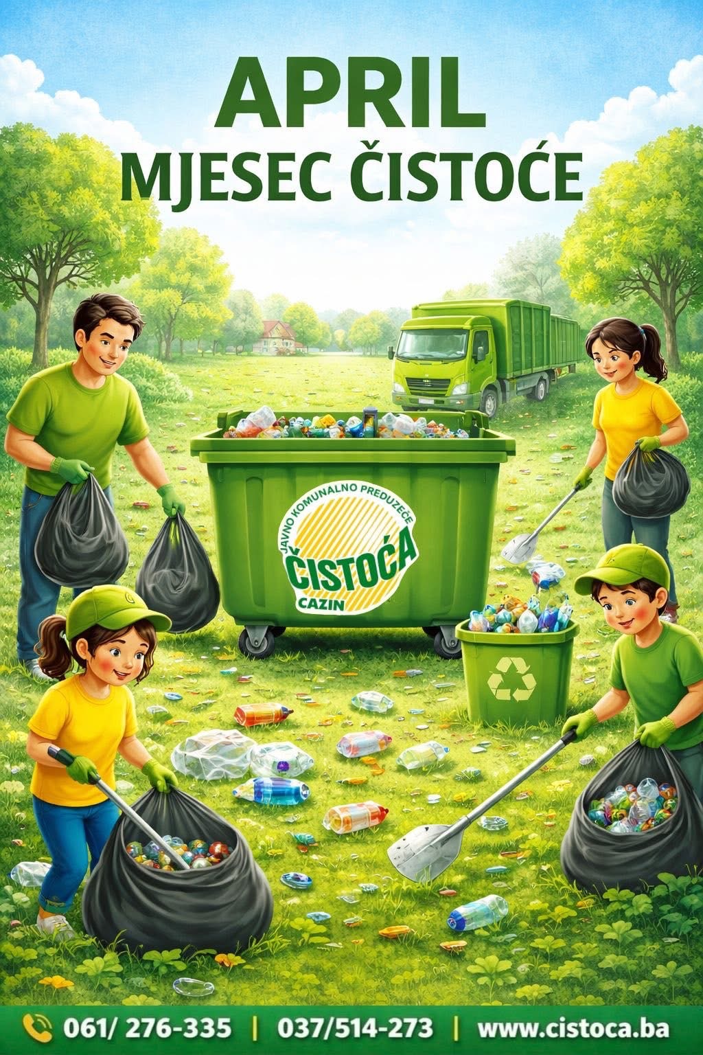 JKP „Čistoća“ d.o.o. Cazin i ove godine pokreće tradicionalnu proljetnu kampanju uređenja i čišćenja javnih površina pod nazivom „April – mjesec čistoće“, s ciljem da grad učine ljepšim, urednijim i zdravijim za sve građane.