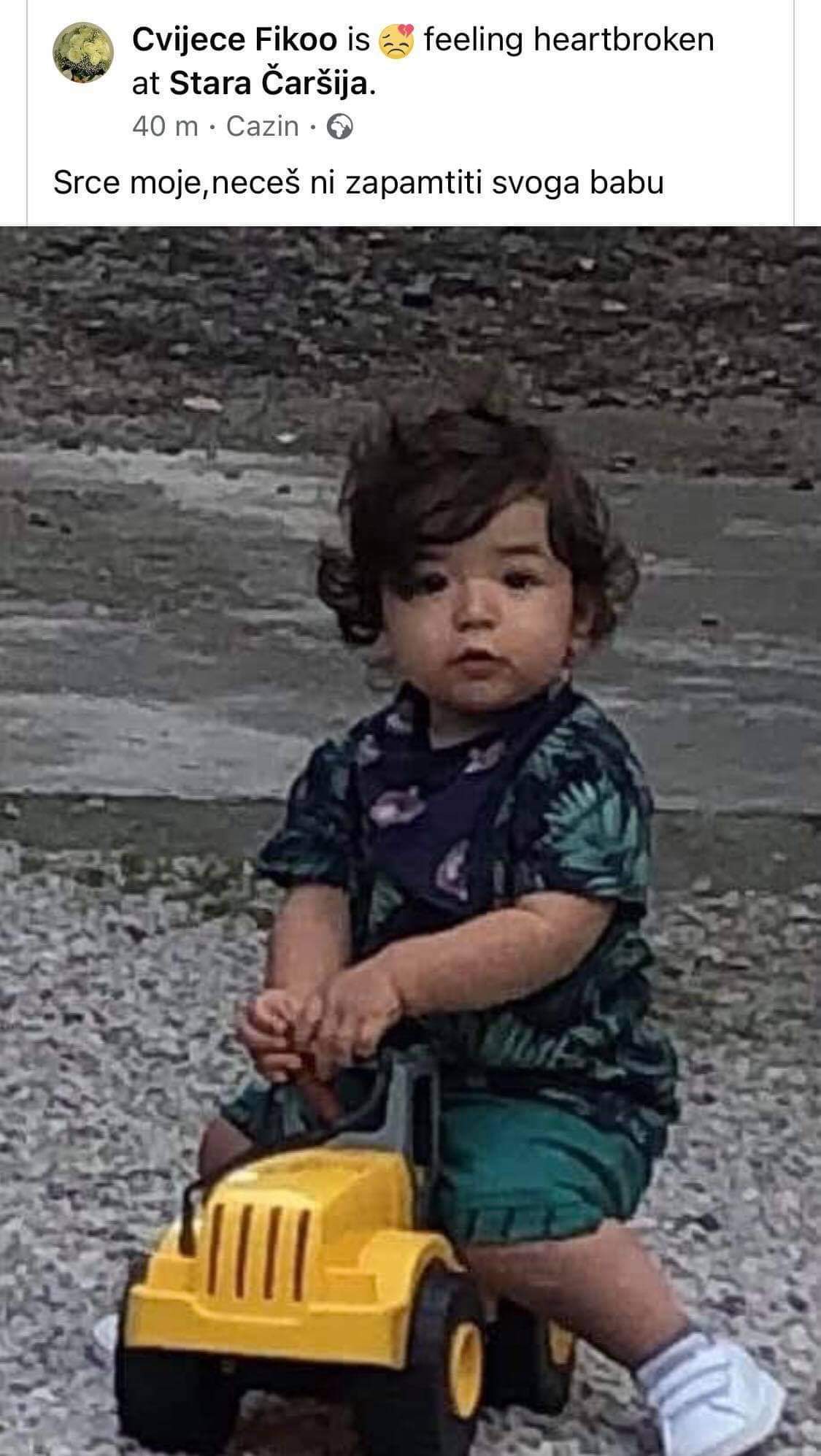 Jedna od poruka, koju su danas na svome FB postavili iz poznate cazinske Fiko cvjećare posebno je bolna i tužna, uz sliku najmlađeg sina Asmira Durića i riječi: “Srce moje, nećeš ni zapamtiti svoga babu.” :(
