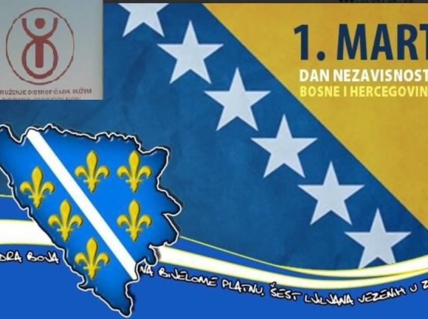 Povodom 1. Marta - Dana nezavisnosti Bosne i Hercegovine, Udruženje distrofičara Bužim će realizovati dvije aktivnost.