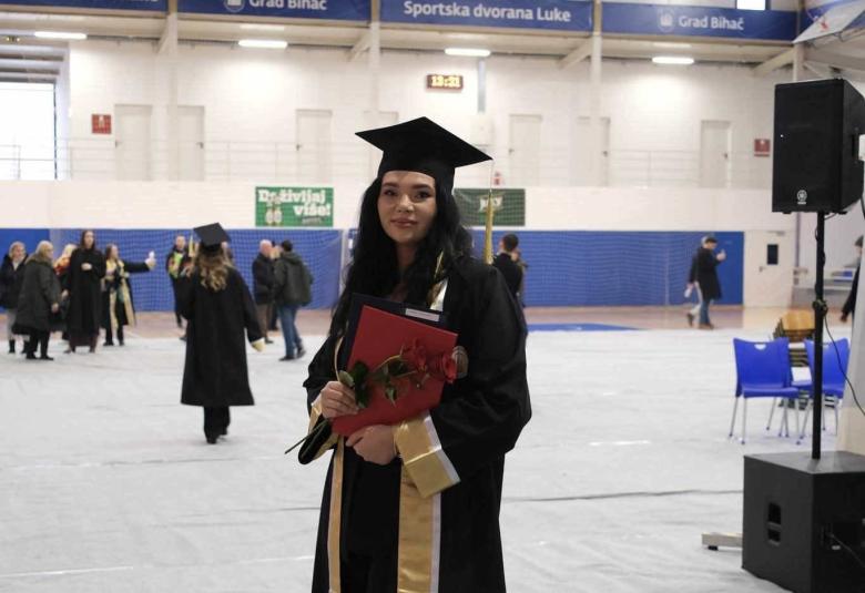 Na svečanoj dodjeli diploma, održanoj u Sportskoj dvorani Luke u Bihaću, Adna je promovirana u zvanje Bachelor of Business Economics, a njen prosjek i predan rad svrstali su je među najuspješnije studente svoje generacije.