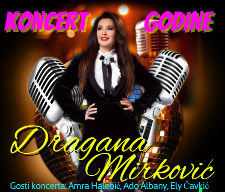 Popularna folk pjevačica Dragana Mirković, u Bihaću će 28. decembra u Sportskoj dvorani Luke održati veliki koncert, sa gostima, gdje nastupaju Amra Halebić, Ely Čavkić i Ado Albany.