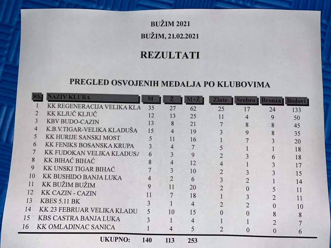 Proteklog vikenda je održan turnir Bužim open za djecu, kadete i juniore gdje je učešće uzeo i klub KBV BUDO Cazin sa 22 takmičara.