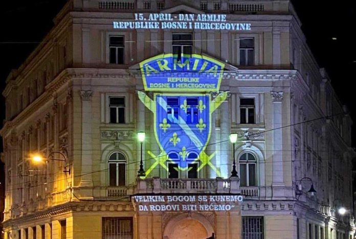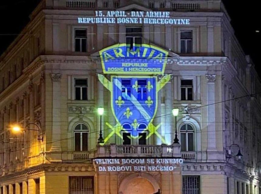Povodom Dana Armije Republike Bosne i Hercegovine u srcu Sarajeva zasjao je amblem Armije RBiH.