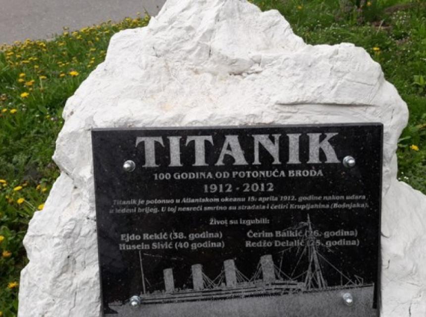 – Tražio sam od načelnika da mi odredi jedno mjesto gdje bih to mogao postaviti i on je odredio da to bude u parku kod Doma kulture. Nakon toga sam napravio spomenik koji ima određenu simboliku. Plava betonska podloga simbolizira more, kamen simbolizira ledeni brijeg u koji je udario “Titanic”, a ploča na kamenu nudi osnovne informacije o Bošnjacima poginulim na “Titanicu”. Ovaj spomenik mi održavamo svake godine. Na godišnjicu tragedije na “Titanicu”, ovdje se okupimo i odamo počast našim poginulim rođacima i sugrađanima.