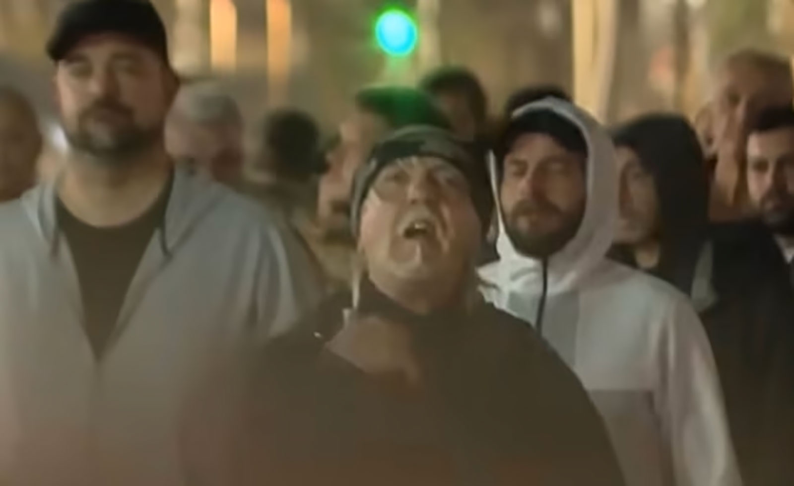 Kada su se u nedjelju 2. novembra pristalice i protivnici vlasti u Srbiji našli jedni naspram drugih, u i oko šatorskog naselja popularno nazvanog "Ćacilend" u centru Beograda, među podržavocima vlasti kamere su zabilježile muškarca koji je protivnicima pokretom ruke preko vrata poslao jasnu poruku.