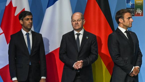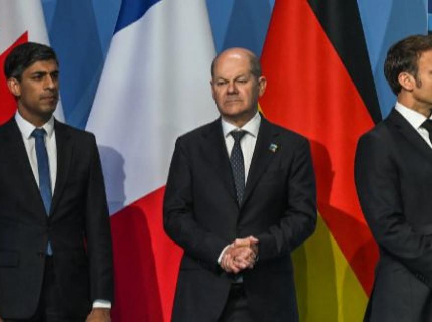 FOTO: Sunak, Šolc, Makron. Artur Widak/NurPhoto