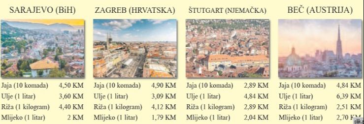 Tome treba dodati i činjenicu da je kupovna moć građana u zemljama EU znatno veća nego u BiH, gdje dvije prosječne plaće ne mogu pokriti potrošačku korpu, a mi smo uporedili neke od cijena osnovnih namirnica u BiH, Hrvatskoj, Njemačkoj i Austriji.