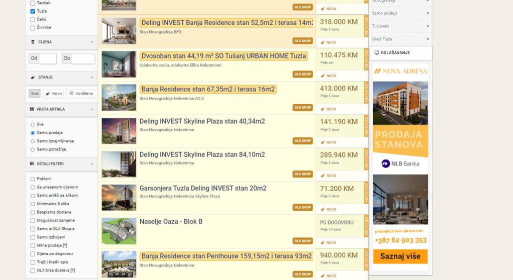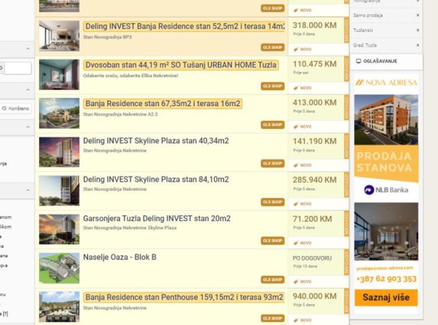 Cijene stanova u Tuzli / Foto: Printscreen