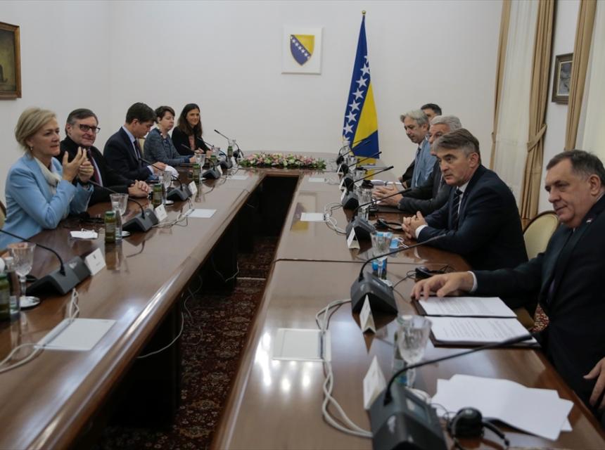 “Ono što me veseli i jedan i drugi predstavnik, i EU-a i američke administracije, kazali su - vi se dogovorite, mi ćemo vas podržati i zato sam i predložio kolegi Izetbegoviću i danas i sutra stranačke sastanke uz ovo sve što ćemo imati s njima i ja mislim da će jedno od rješenja koja su već na stolu ili malo dorađena ta rješenja u konačnici to rješiti”, kazao je predsjednik HDZ-a BiH Dragan Čović.