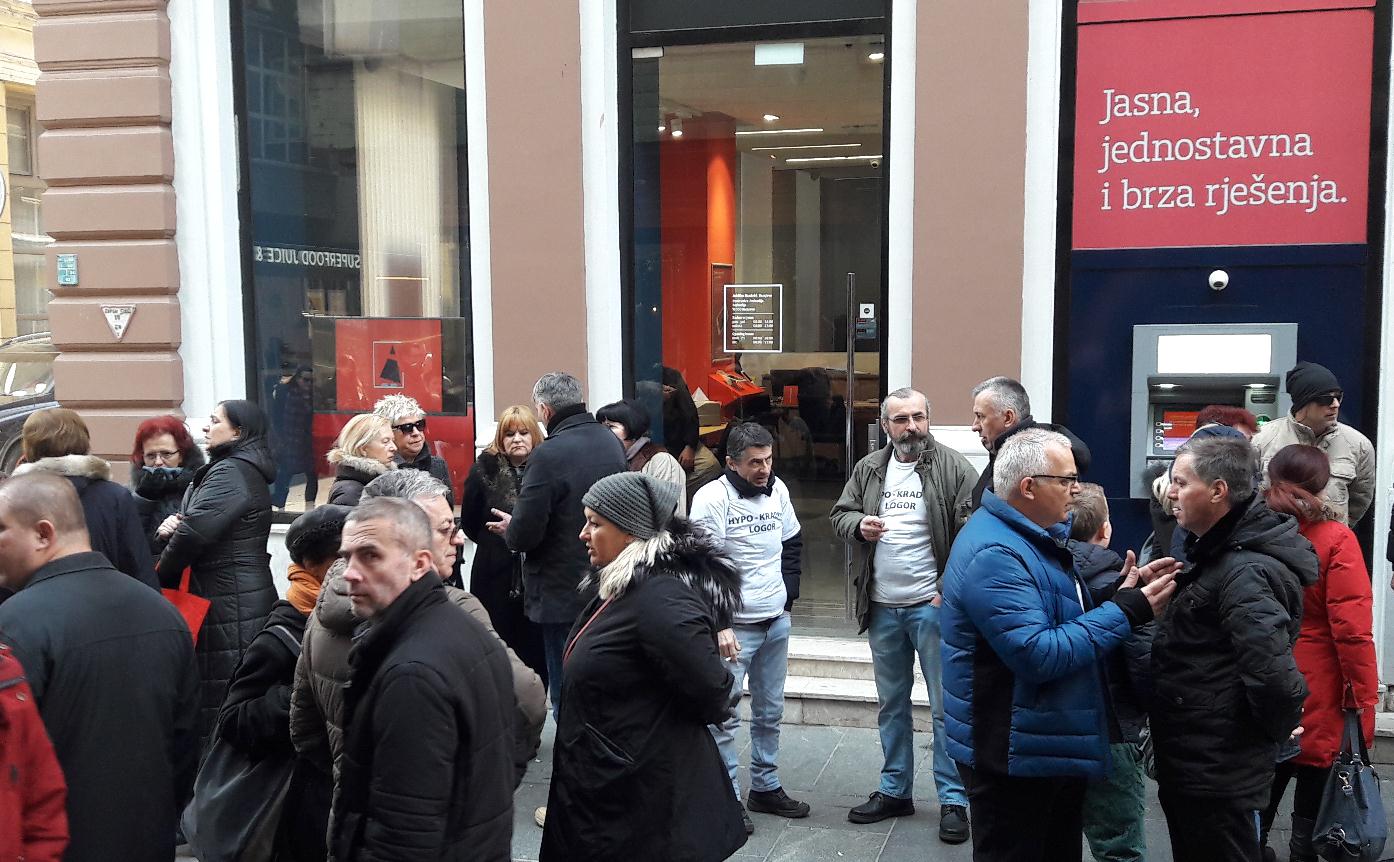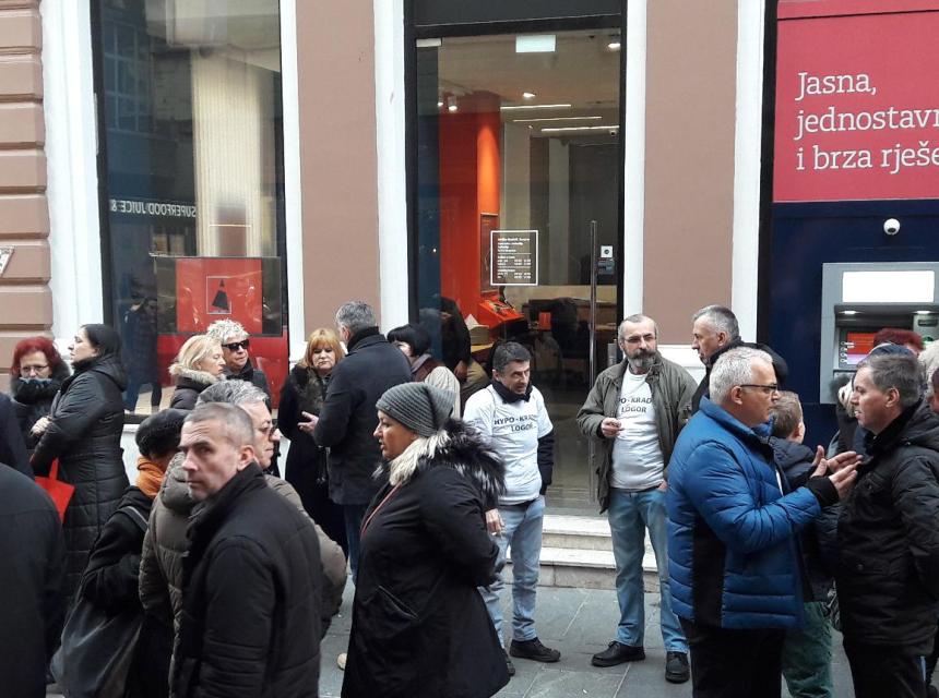U nekoliko gradova Bosne i Hercegovine i danas su članovi Udruženja "Švicarac" blokirali rad šaltera Hypo-Addiko banke uplatama rata po 0.05 feninga.