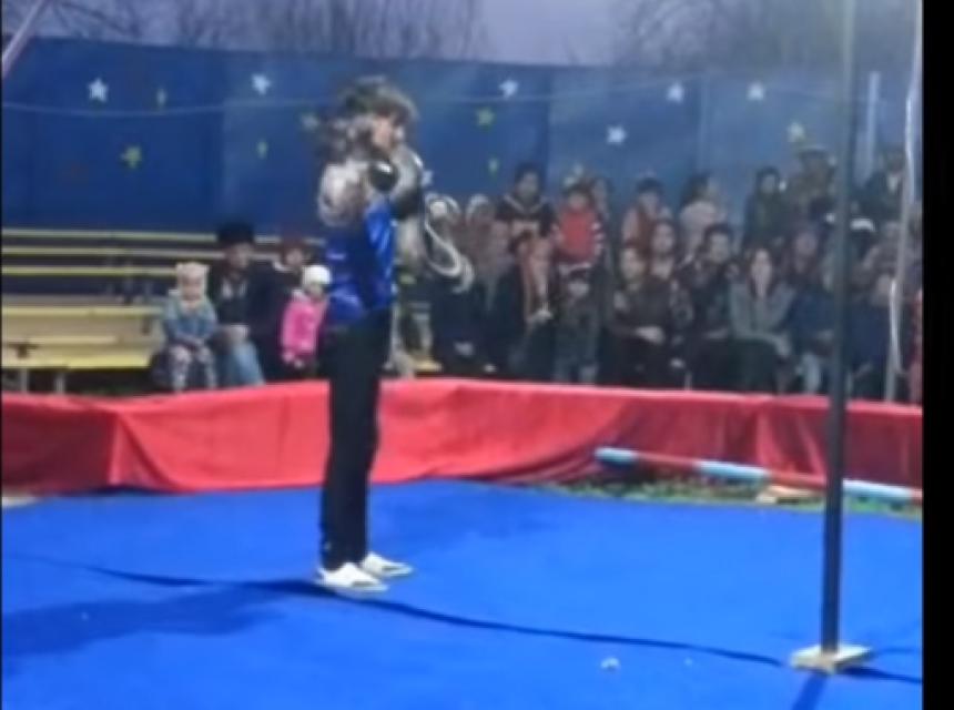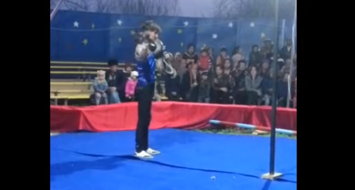 Trener zmija u jednom ruskom cirkusu oko vrata je omotao pitona, što se ispostavilo kao glupa ideja, jer zmija očigledno nije bila istrenirana za to.