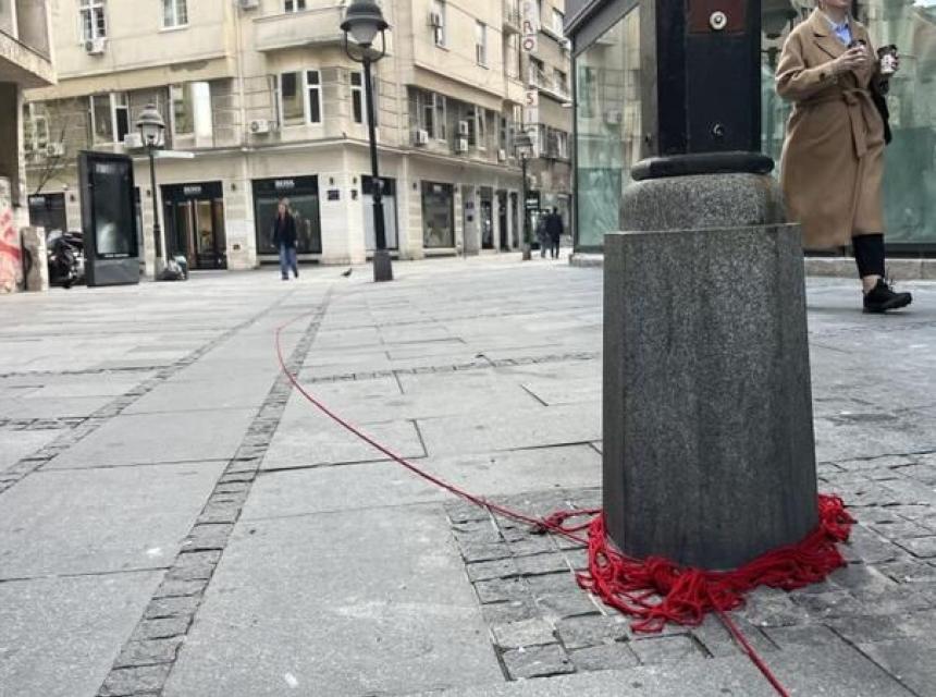 Aktivisti su razvukli crvenu nit odmah iza Trga Republike sve do platoa Filozofskog fakulteta, u dužini od 1.425 koraka.