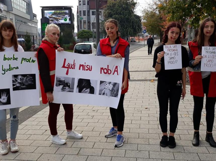 Naime, povodom ovog važnog datuma održan je ulični perfomans u centru grada Cazina, gdje su prolaznici mogli realističkim prikazom vidjeti posljedice žrtava trgovine ljudima.