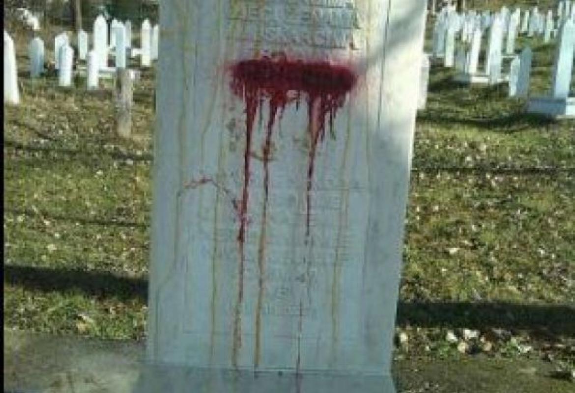 Naime, centralni spomenik – nišan na bošnjačkom mezarju Stražište u Višegradu, posvećen više od 3.000 Bošnjaka koji su tokom agresije ubijeni u ovom mjestu, danas je ponovo oskrnavljen.