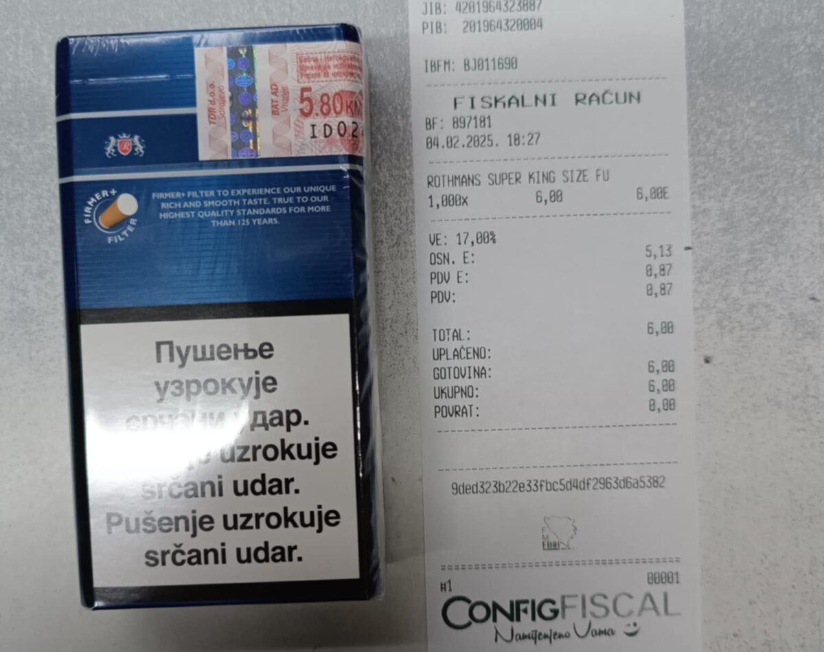 Kako navode, na kutijama odnosno paklicama cijena pakovanja cigareta često iznosi 5,80 KM, dok im na računu bude naplaćeno 6,00 KM. Ova razlika od 20 feninga izazvala je brojne reakcije među kupcima koji tvrde da su bili iznenađeni i nezadovoljni zbog ove neslaganja u cijeni.