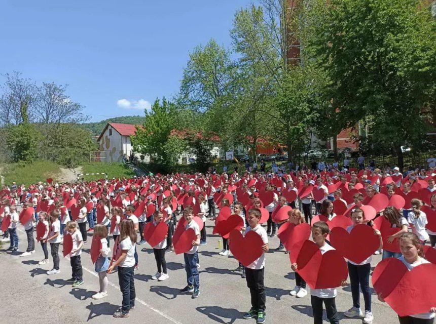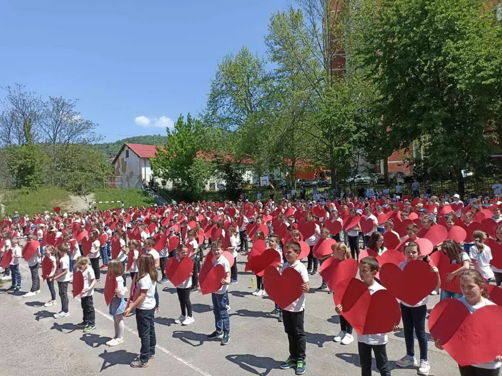 Povodom 49 godina Osnovne škole Brčanska Malta, djeca su izvela priredbu, poslavši poruku odraslima sa 600 crvenih srca podignutih u zrak