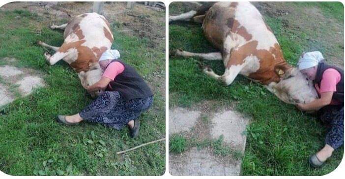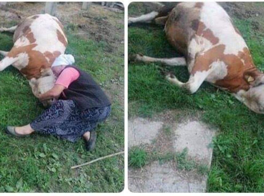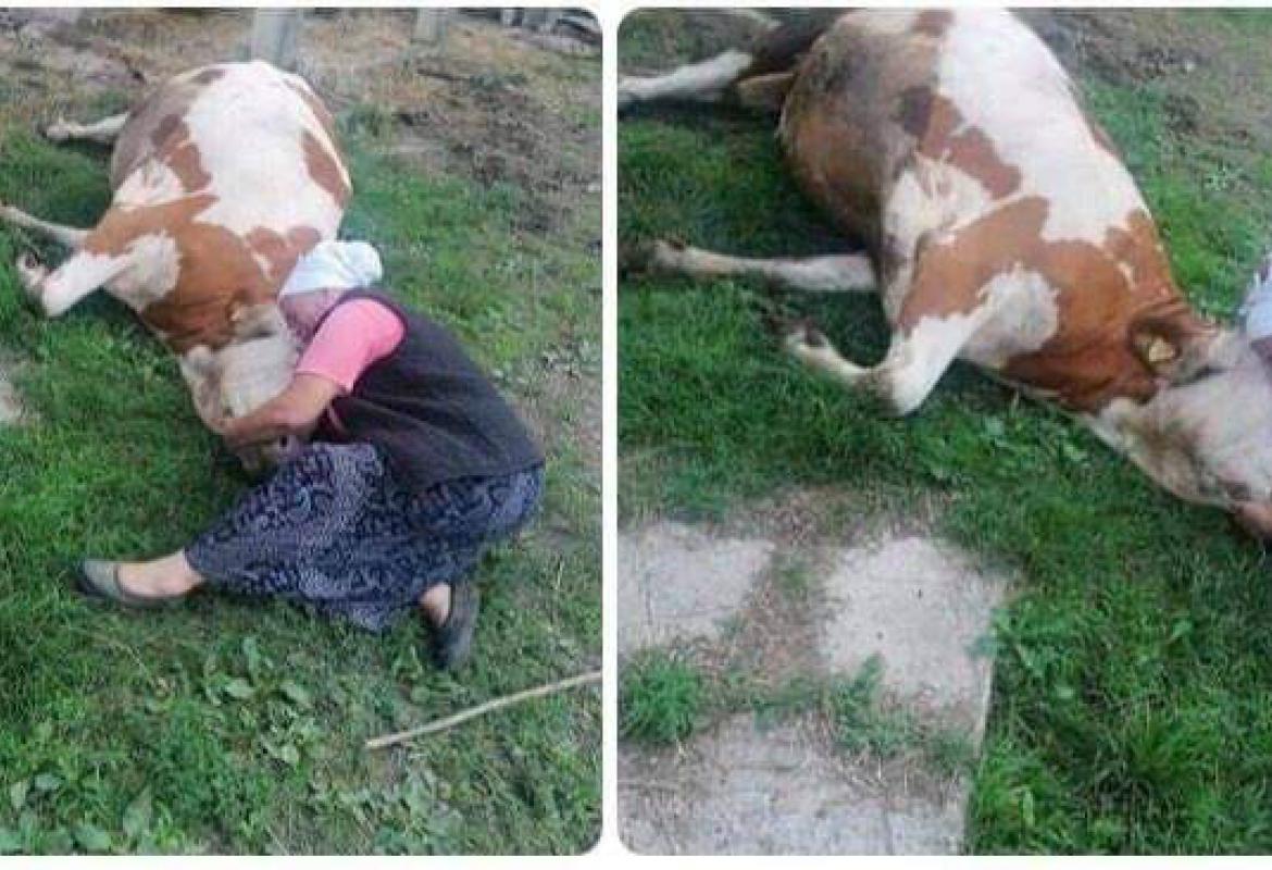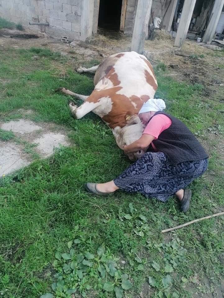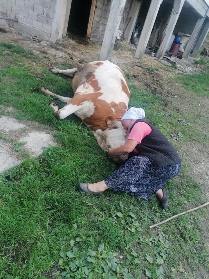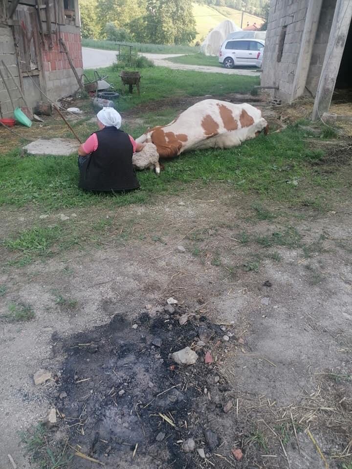 Jako tužne slike dobijamo danas iz Velike Kladuše, iz Šumatca. Starica plače, sjedi pored i grli uginulu kravu. Kako smo saznali, nena se zove Semka Šabić.