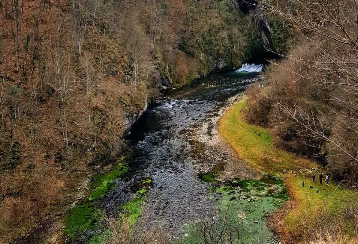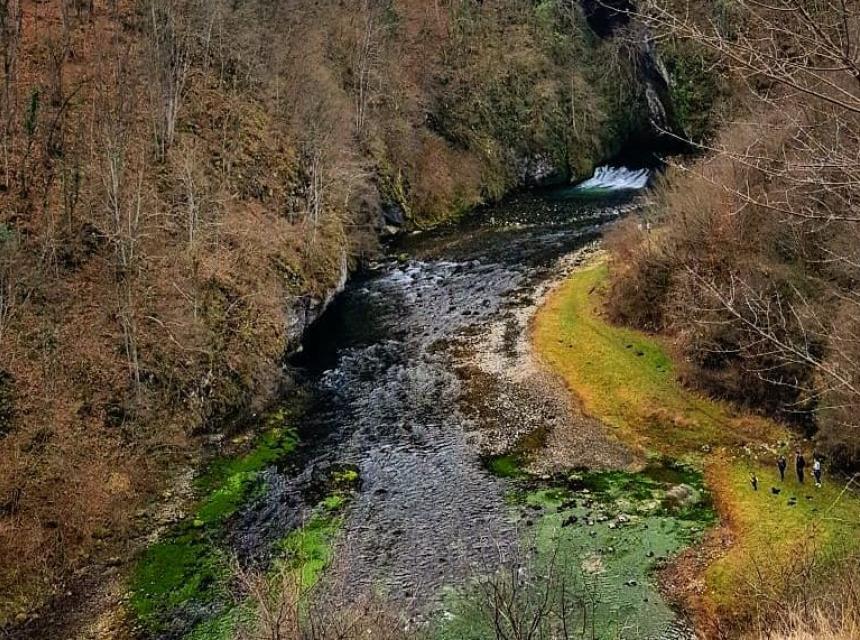Svega stotinjak metara od same pećine nalazi se izvor rijeke Dabar. Voda u ogromnom mlazu, stvarajući snažan huk, izvire iz stijene otičući riječnim koritom čija je dužina oko 3,5 kilometra.