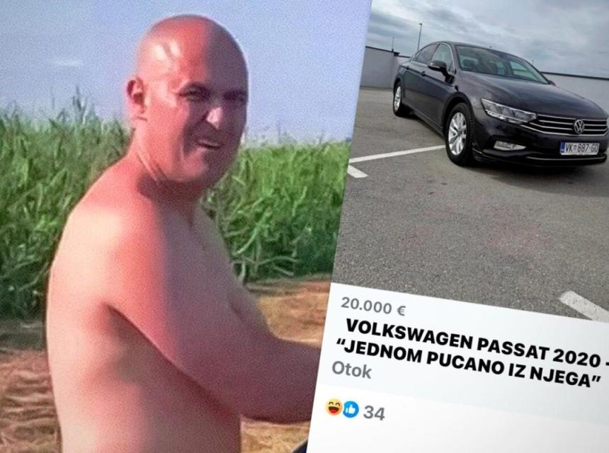 Josip Dabro je na Facebooku objavio oglas za prodaju Volkswagen Passata iz 2020. godine te ostavio opis: “Jednom pucano iz njega.”