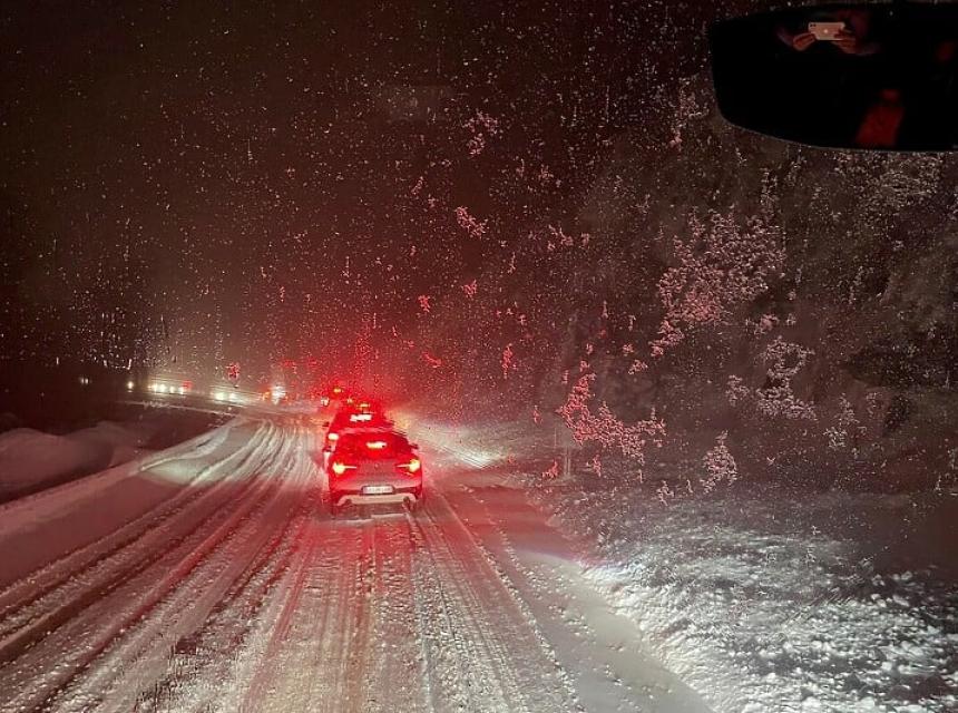 Dežurne ekipe su na terenu, ali vozači su se požalili da snijega ima na cesti jer kad grtalice prođe, zbog naleta vjetra, vrlo brzo nastane novi sloj. Jedan od njih kazao je da je satima blokiran i da bi do prihvatnog centra mogao jedino pješke, prenosi Index.hr.
