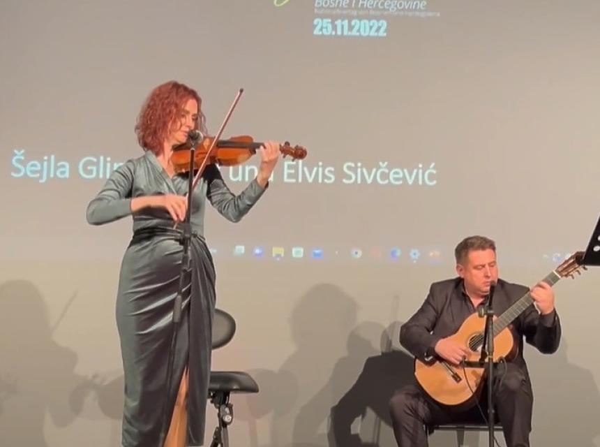 "Na pozornici nam se zatim pridružio izvrsni Predrag Duronjić, uz neizostavnu našu prekrasnu prof. Aidu Mujačić iz Tuzle. Bila je to ekipa koja je donijela božanstvene zvukove Bosne i Hercegovine i rasula ih kroz prašku noć", kazala je Mlinarević.