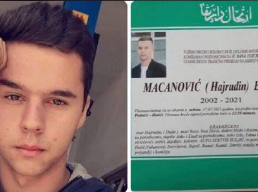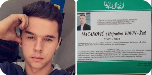 Danas će u 12.30 minuta ispred porodične kuće krenuti tužna povorka i dženaza Edvinu Macanoviću Žutom. Dženaza će se klanjati iza podne namaza kod džamije Tržačka Platnica- Hatići.