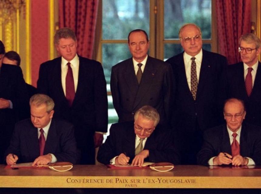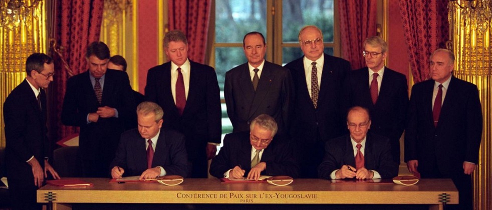 U američkoj bazi vojnog zrakoplovstva "Wright-Patterson", koja se nalazi u gradu Dayton, je 21. novembra 1995. dogovoreno da se završi troipogodišnji rat i usaglašen je novi ustavnopravni poredak Bosne i Hercegovine. Nedugo zatim, 14. decembra 1995. godine, u Parizu je svečano i potpisan Opći okvirni sporazum za mir u Bosni i Hercegovini.